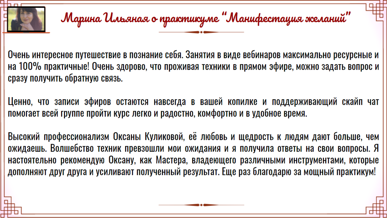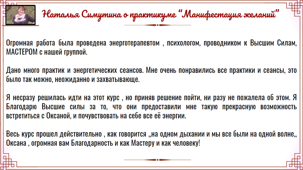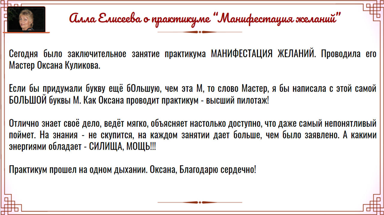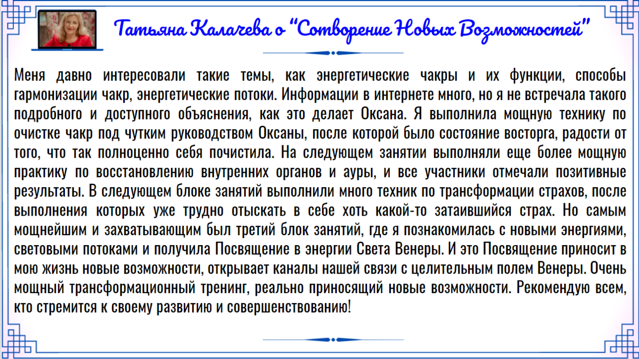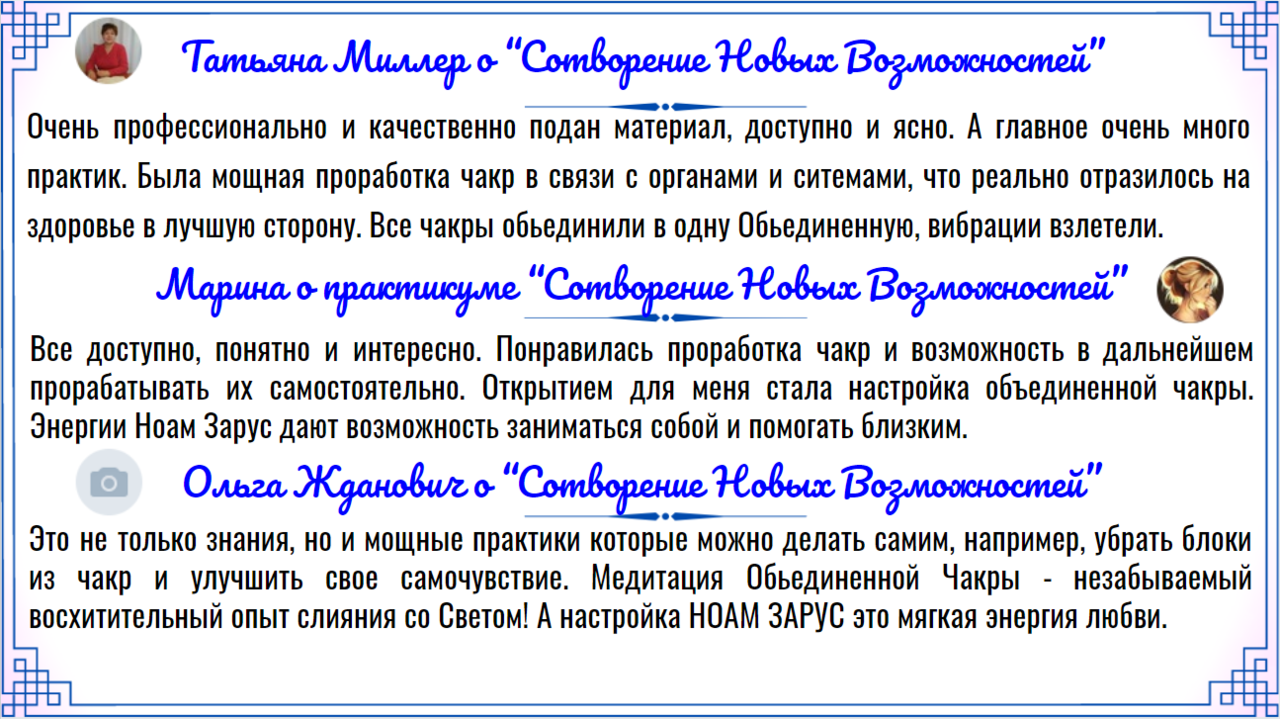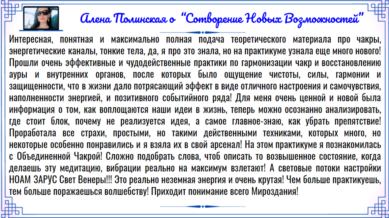 Отзывы о практикуме «Сотворение Новых Возможностей»