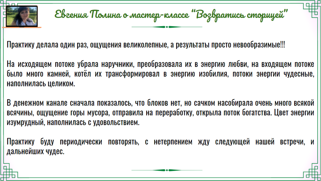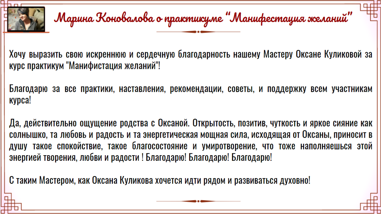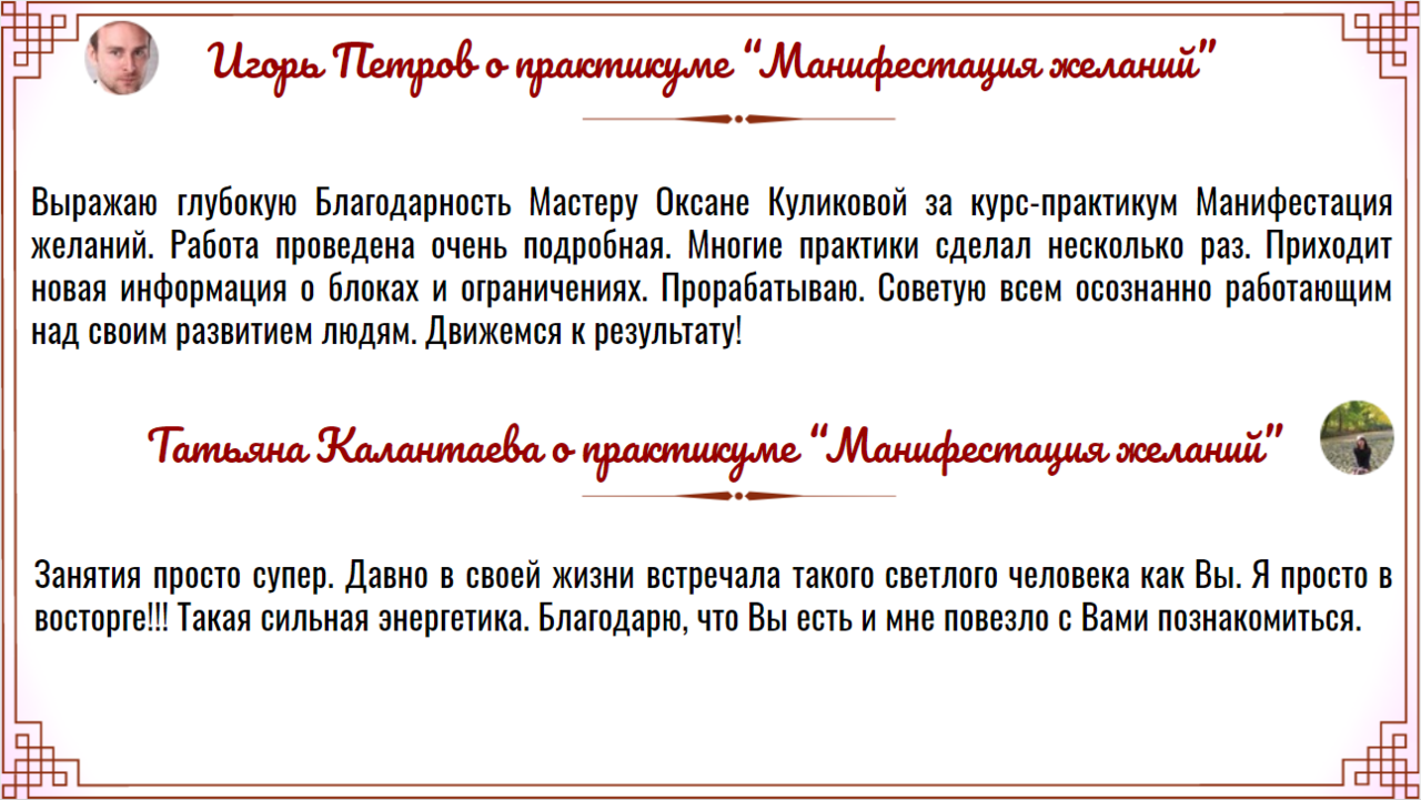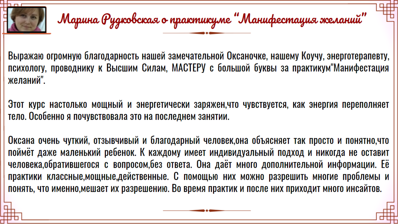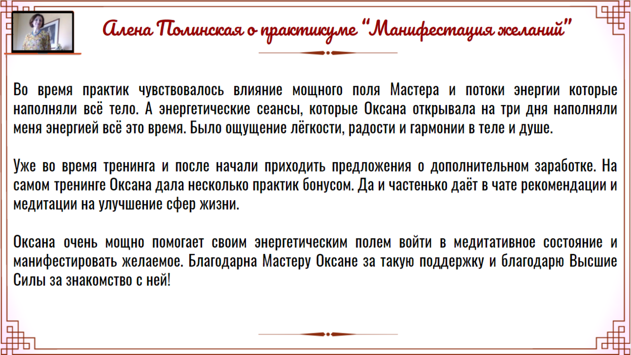 Отзывы о практикуме «Сотворение Новых Возможностей»
