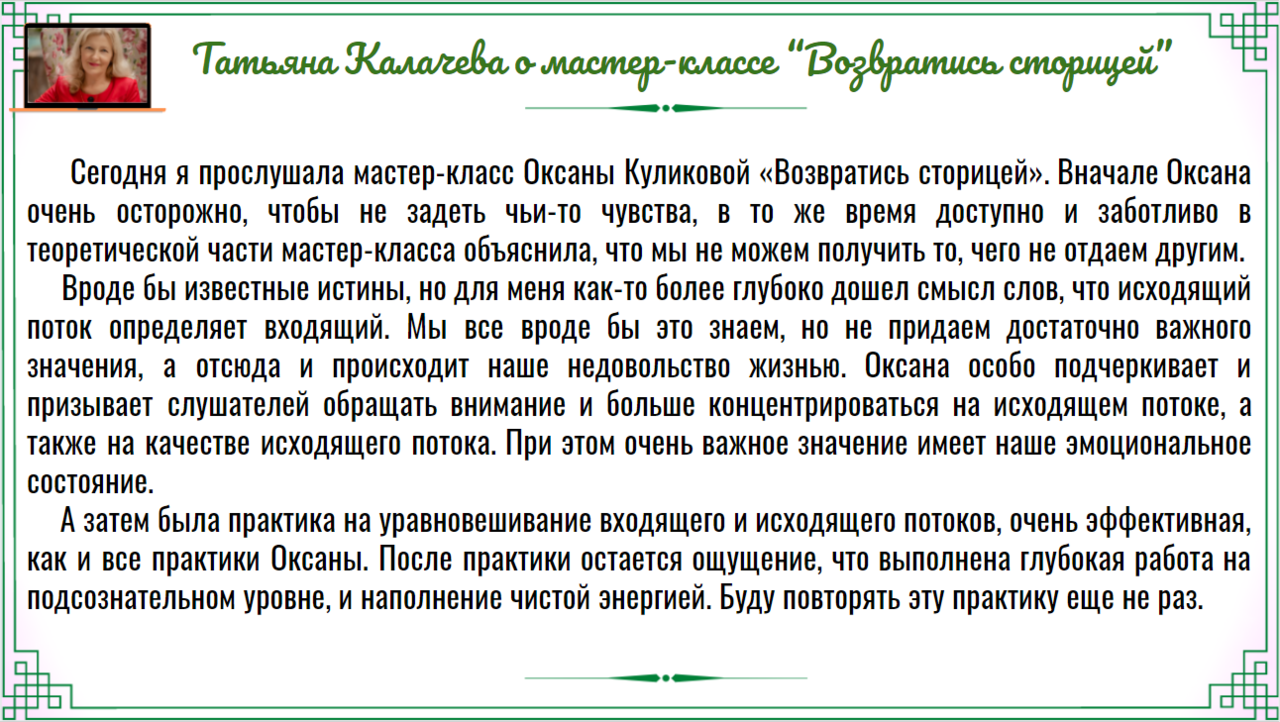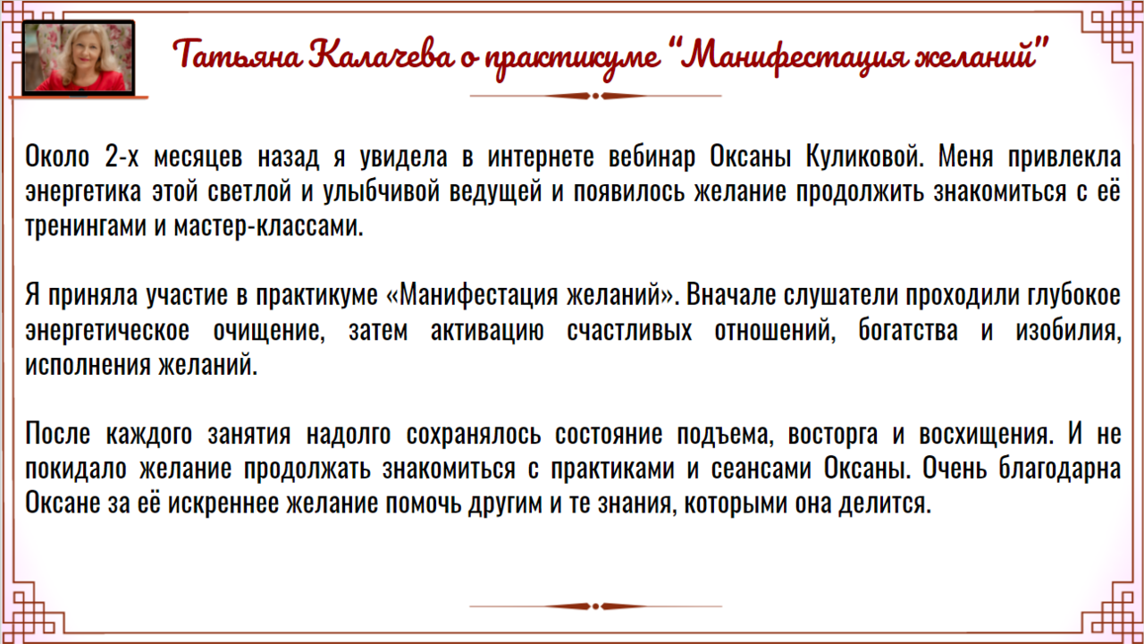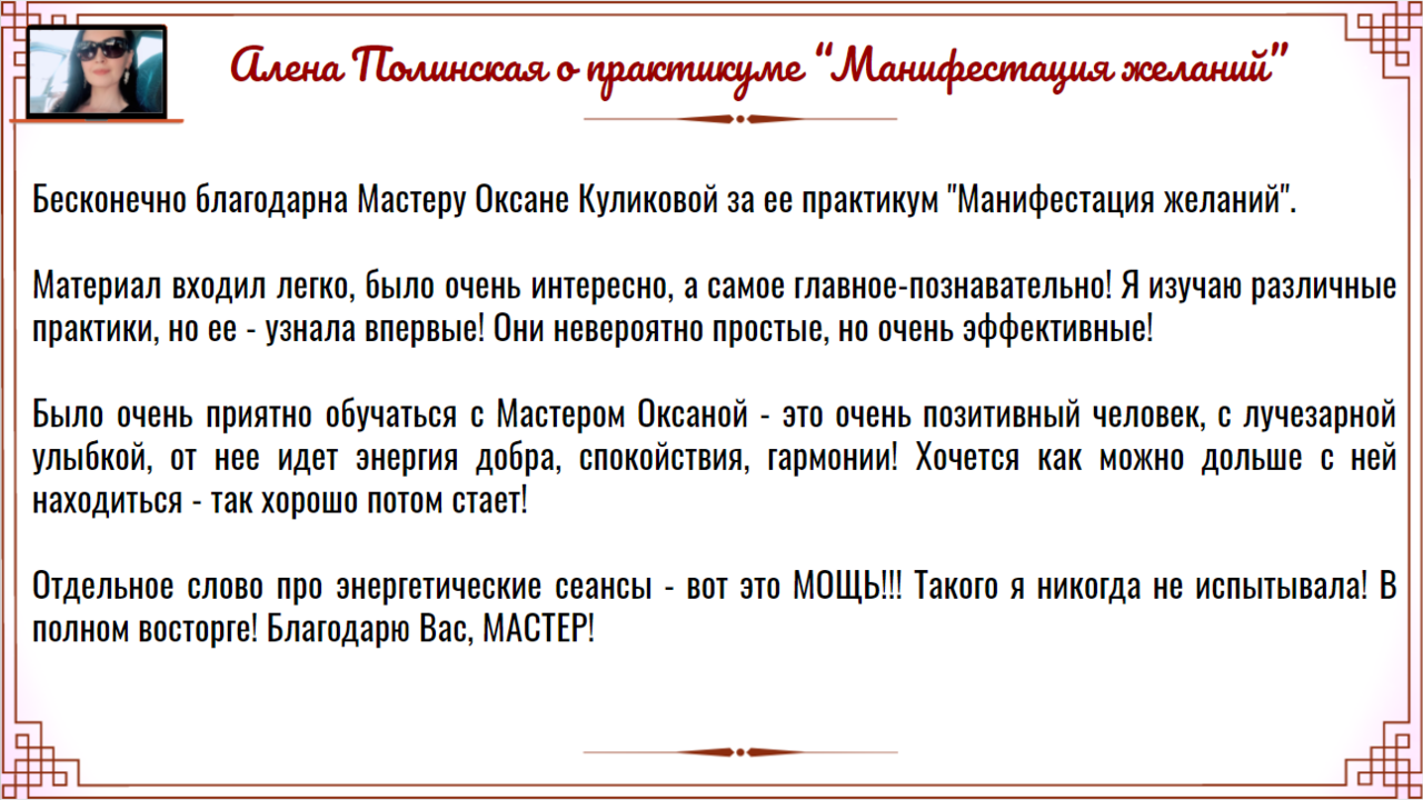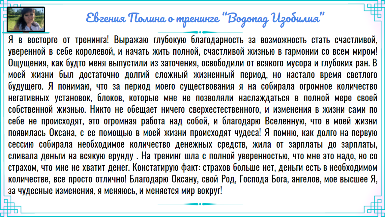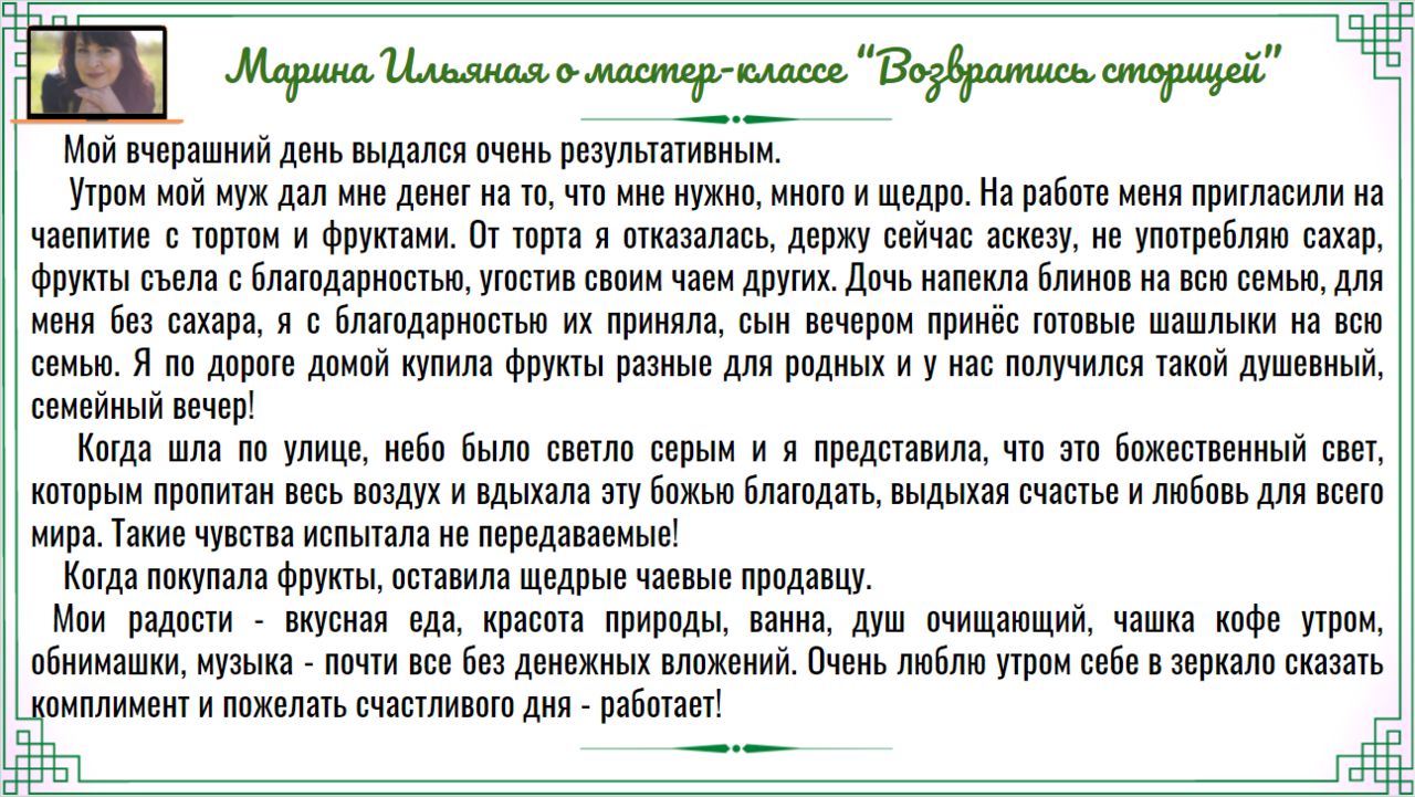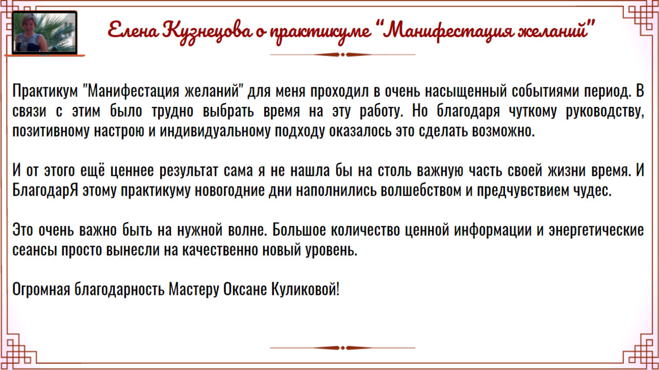 Отзывы о практикуме «Сотворение Новых Возможностей»